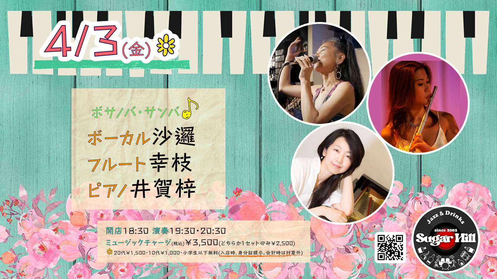 ボーカル沙邏 フルート幸枝 ピアノ井賀梓