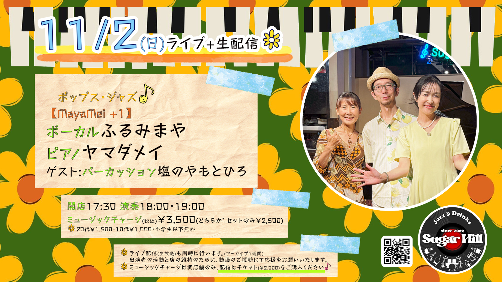 【MayaMei+1】ボーカル ふるみまや ピアノ ヤマダメイ ゲスト:パーカッション塩のやもとひろ