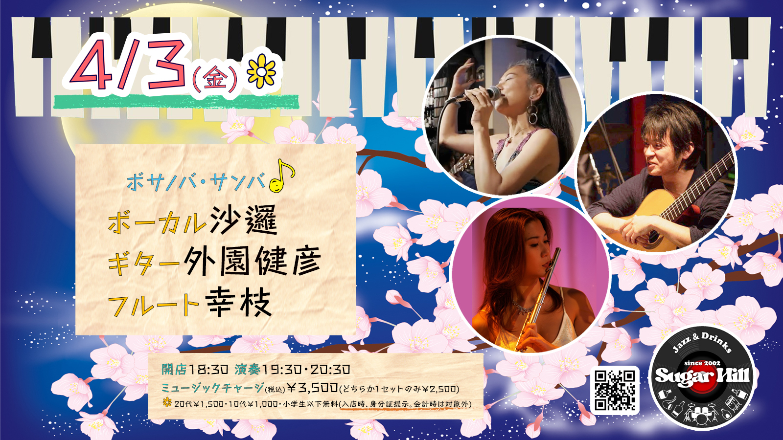 ボーカル沙邏 ギター外園健彦 フルート幸枝
