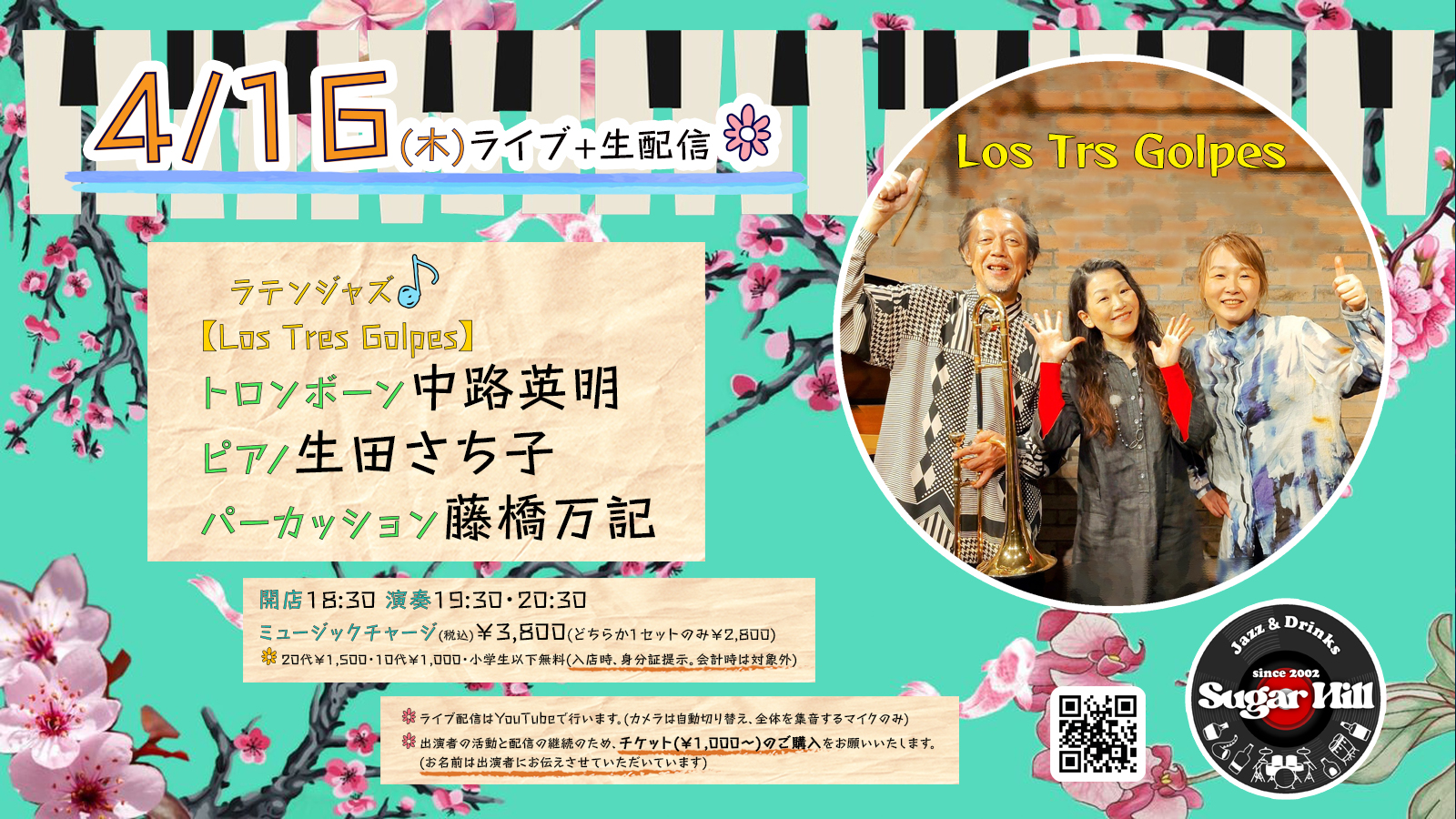 【Los Tres Golpes】トロンボーン中路英明 ピアノ生田さち子 パーカッション藤橋万記