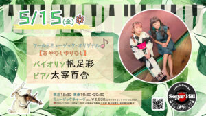 2026年4月29日 最終更新日時 : 2026年4月29日 演奏の予定 « イベント一覧 11~14close 5月 11-5月 14 « 【jaja】サックス秋山幸男 ギター西沢譲 ベース市村浩 ドラム高島基博 ゲスト:ピアノ堤有加 【あやむしゆりむし】バイオリン帆足彩 ピアノ太宰百合 » カレンダーに追加 Google カレンダー iCalendar Outlook 365 Outlook Live 詳細 開始: 5月 11 終了: 5月 14