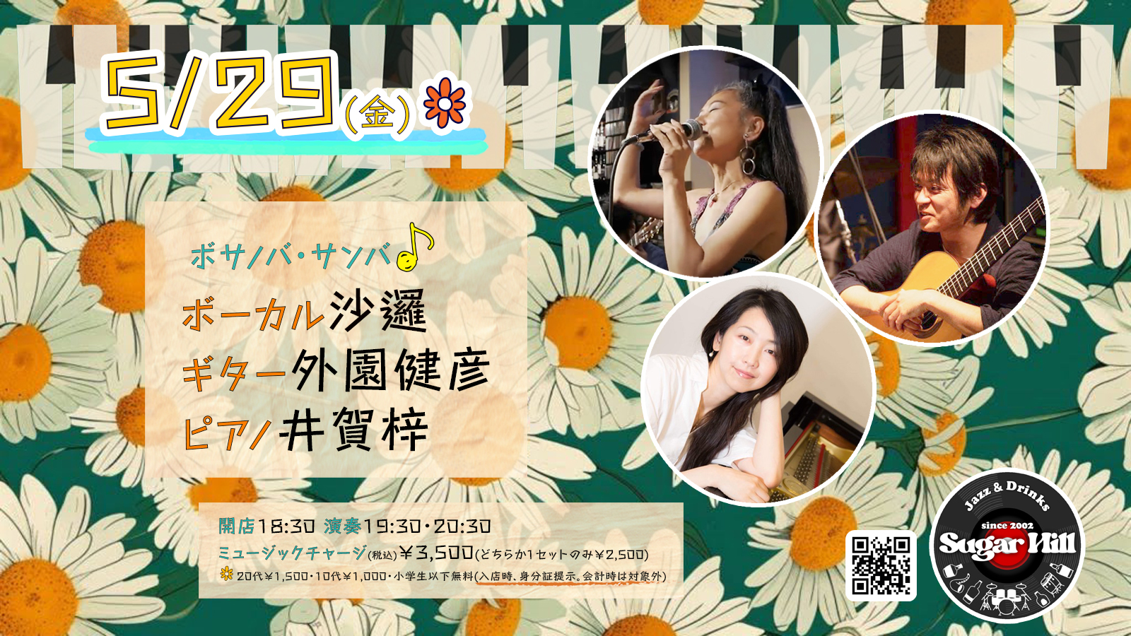 ボーカル沙邏 ギター外園健彦 ピアノ井賀梓