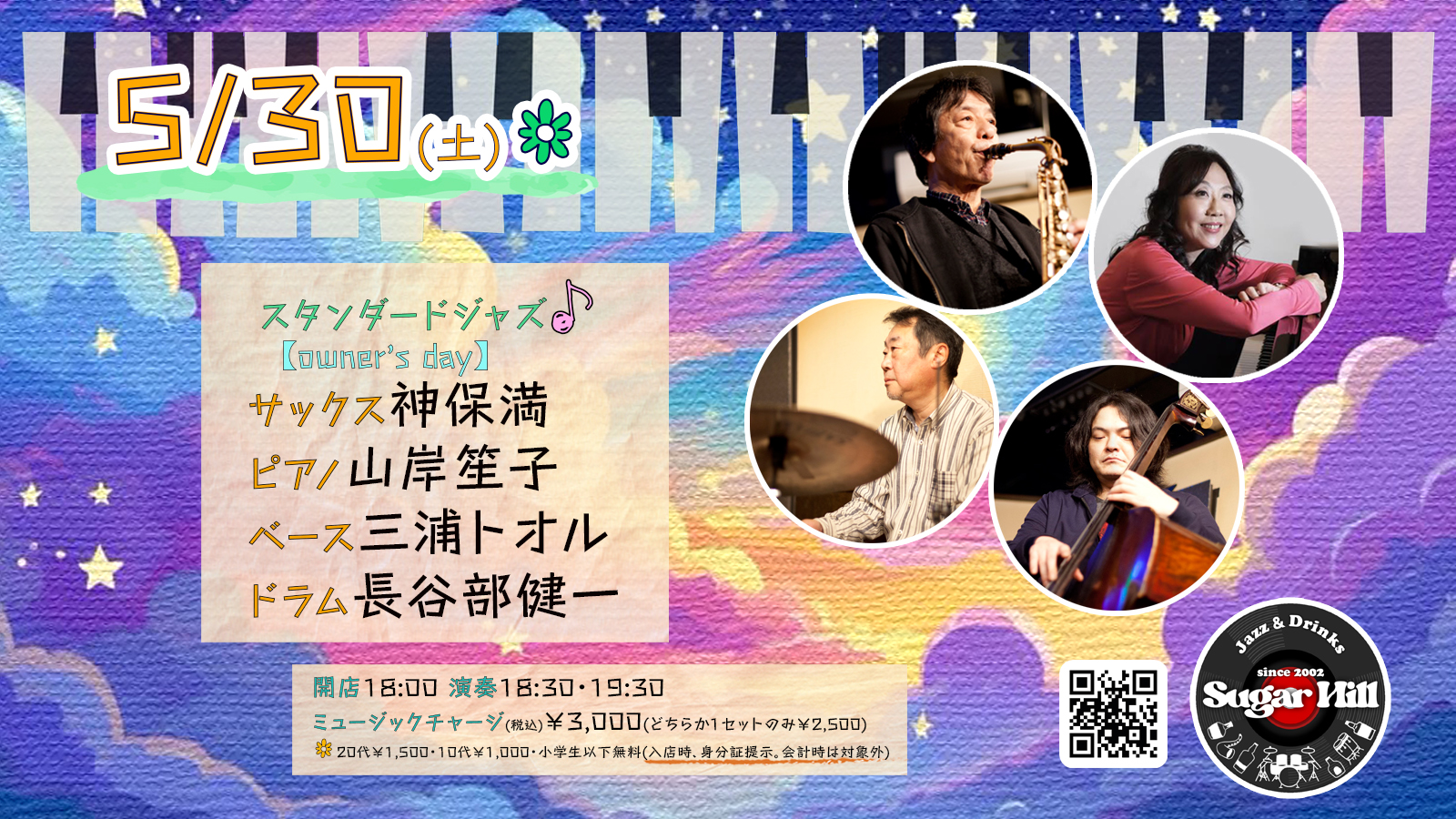 【owner's day】サックス神保満 ピアノ山岸笙子 ベース三浦トオル ドラム長谷部健一