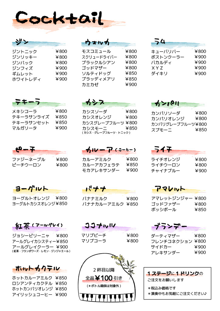 <モクテル>(ノンアルコール)